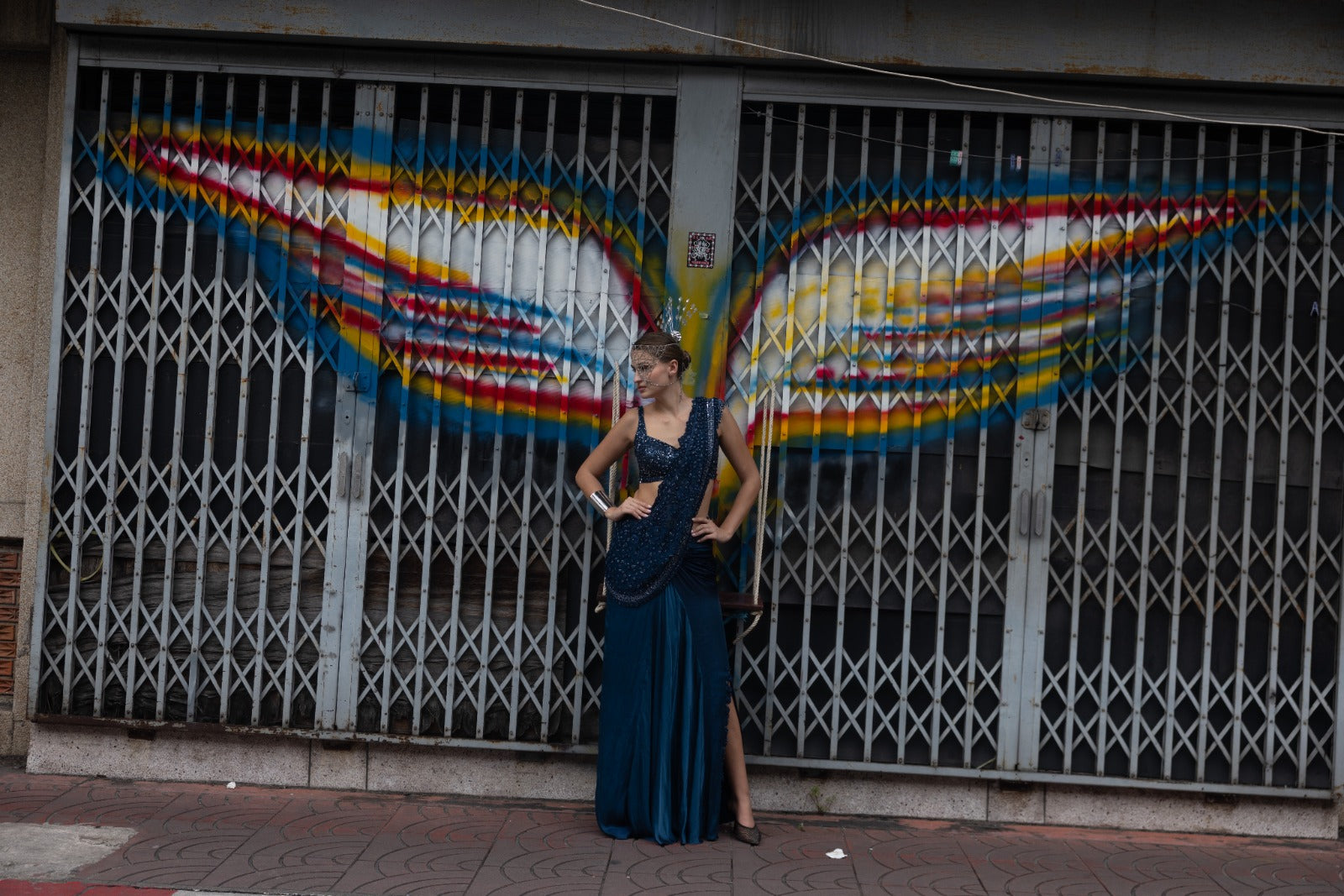 Bustier with drape skirt and Sash